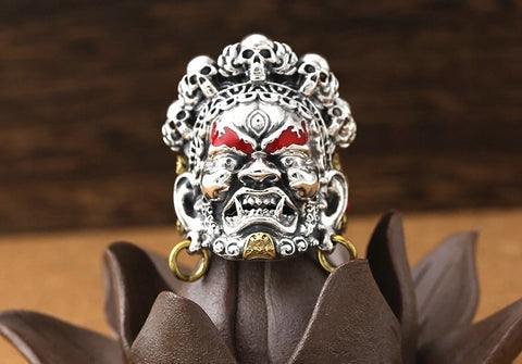 Arbore fièrement cette bague du Dieu Mahakala, il est le protecteur des enseignements. Mahakala est aussi appelé le gouverneur de Maya.