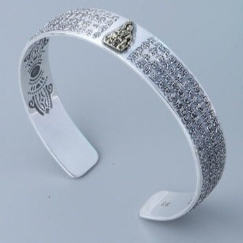 Ce bracelet représente Acalanatha. C'est un dieu boudddhiste et également roi du savoir et de la colère. Le pourtour du bracelet est sculpté de texte sacré apportant la bonne chance.
