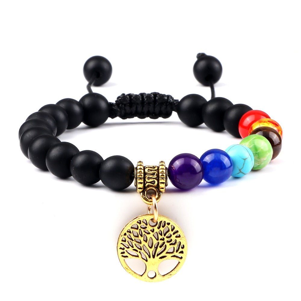 Ce bracelet chakras avec un médaillon de l'arbre de vie est composé de pierre en onyx. Cette pierre aidera à stabiliser votre caractère au cours de la journée et purifiera également votre karma. Cette pierre permettra aux 7 pierres de chakras d'équilibrer vos chakras afin de les maintenir stable le long de la journée.