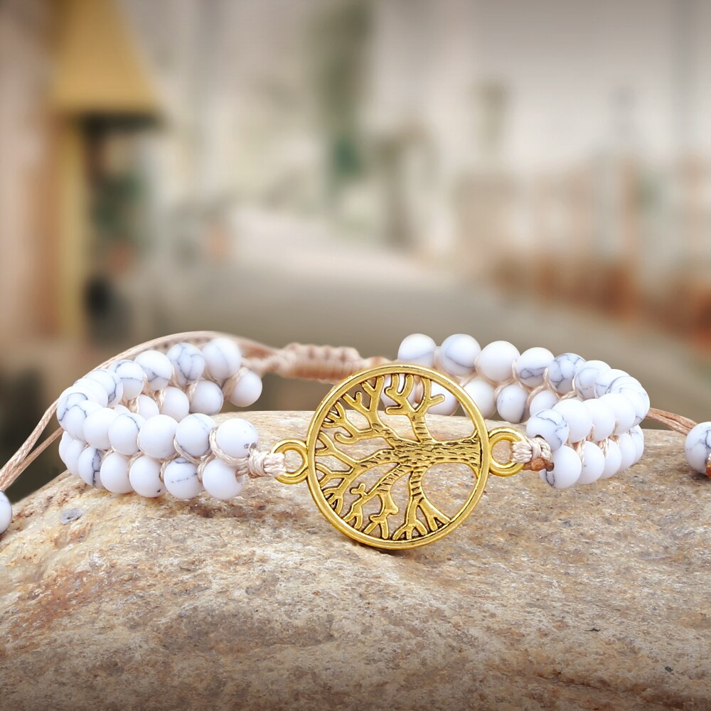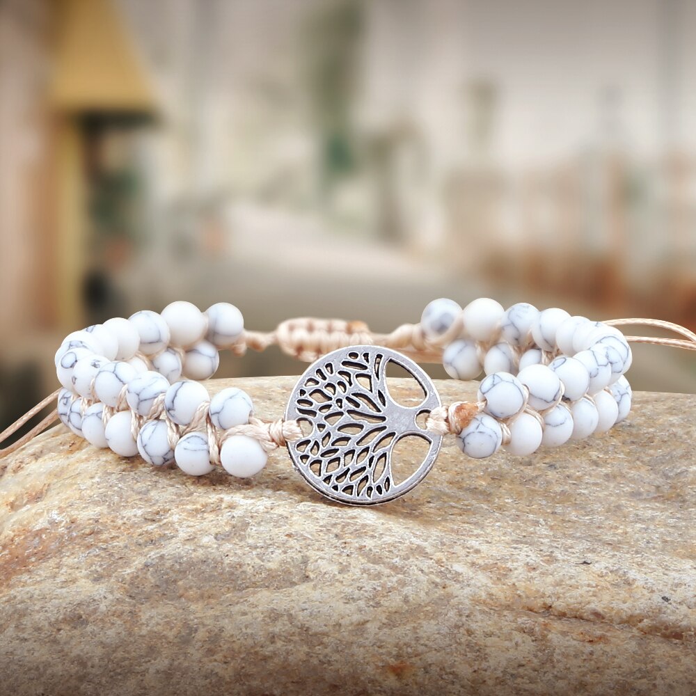 Ce bracelet de yoga est composé de deux rangées de pierre de lune. Cette pierre blanche améliore la qualité de votre sommeil et calme l'hyperactivité. Elle appaise également vos pensées le soir avant d'aller vous coucher.