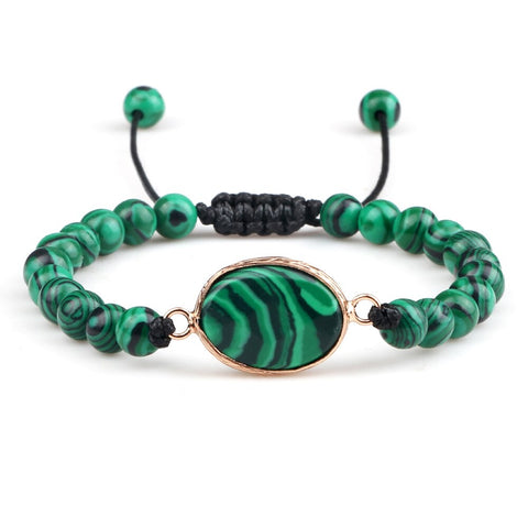Ce bracelet en pierre de malachite vous apaisera dans les moements stressant de votre journée. En plus d'être élégant cette pierre renforcera votre confiance en vous de jour en jour. Cette pierre se porte aussi bien avec des tenues claires que foncées.
