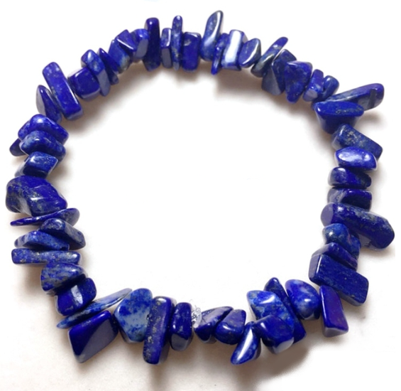 Ce bracelet en pierre de lapis lazuli ira parfaitement avec une tenue blanche ou claire. cette pierre est connue pour ses bienfait sur le chakra de la gorge. On dit que cette pierre bleue améliore la qualité de la respiration en favorisant l'apport d'oxygène à nos organes vitaux.