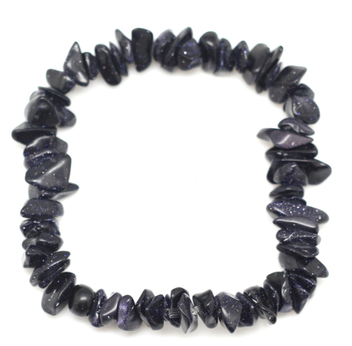 ce bracelet en pierre de sableu bleu est tout simplement hypnotisant. Les légers points scintillants rappellent les nuits étoilées et possèdent quelques bienfaits. cette pierre réduit la déprime, le stress et également les tensions dans l'estomac liées au stress.