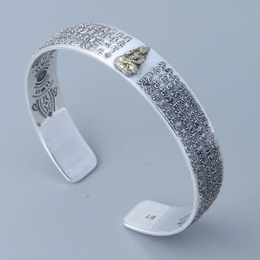 Ce bracelet représente Vairocana. C'est le bouddha des écoles du bouddhisme mahayana. Vairocana est un bouddha majeur dans l'Asie de l'est. Le pourtour du bracelet est sculpté de texte sacré apportant la bonne chance.