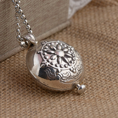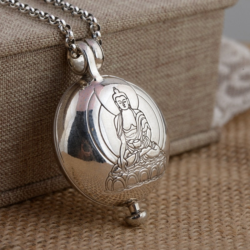 Ce médaillon à l'effigie du Bouddha renferme un secret : il s'ouvre. En plus d'être réalisé à la main il sera unique selon l'objet ou la photo que vous déciderez de cacher quand vous le porterez. Le recto du médaillon est une fleur de lotus, le symbole du bouddha.