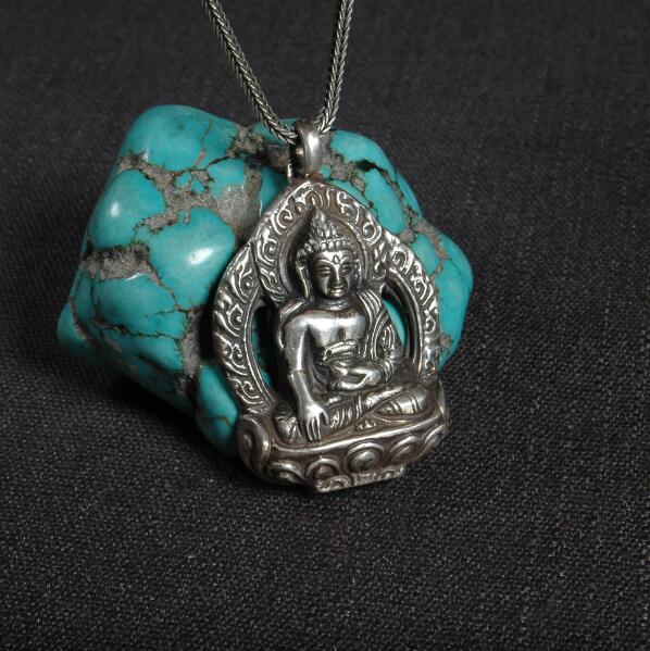 La civilisation tibétaine est imprégnée du Bouddhisme Tibétain. Ce Collier Tibetain représentant  le Bouddha Sakyamuni montre l'ancrage de cette religion au Tibet.