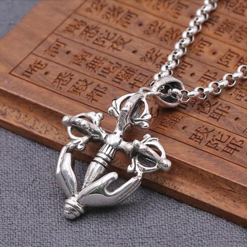 Nous retrouvons sur ce pendentif le Dorje symbole d'indestructibilité et d'immutabilité, il est l'attribut du Dieu Indra : La Foudre. Seul un être pur peut le porter.